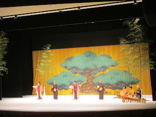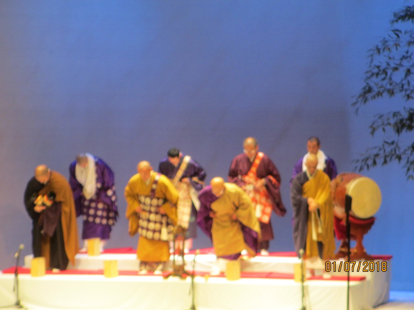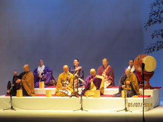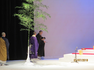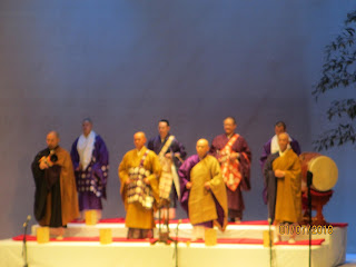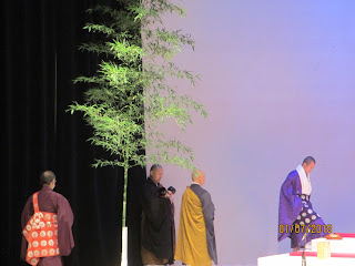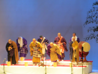 As Kawamoto Sensei finishes, the Buddhist priests (to the sound of the ringing bell) have returned and wind their way in to sit on the stage.
