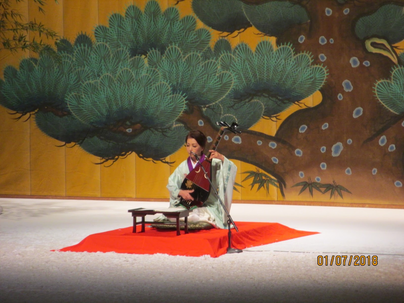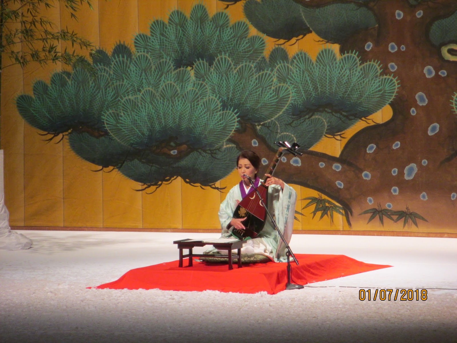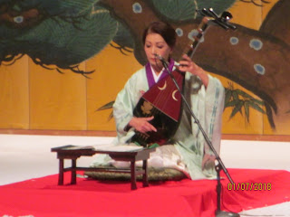 The next performer was the haunting voice of story teller Kyokkaku Kawamoto Sensei with her biwa.